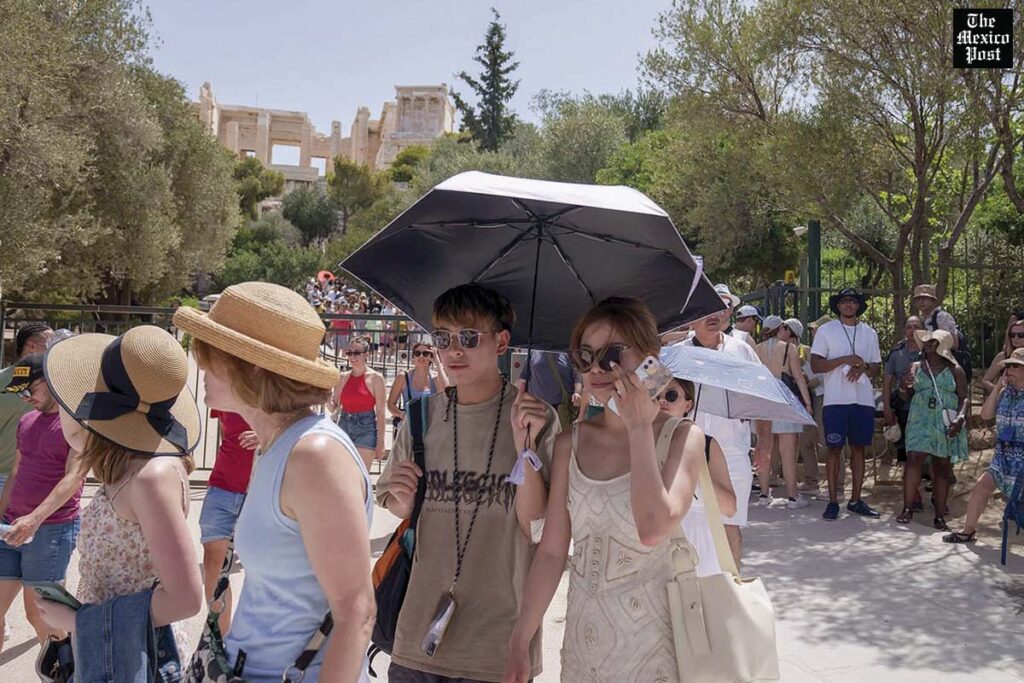 Las visitas que se realizan a la Acrópolis se han detenido por el intenso calor, las autoridades se apoyan utilizando drones con cámaras térmicas para monitorear las temperaturas.