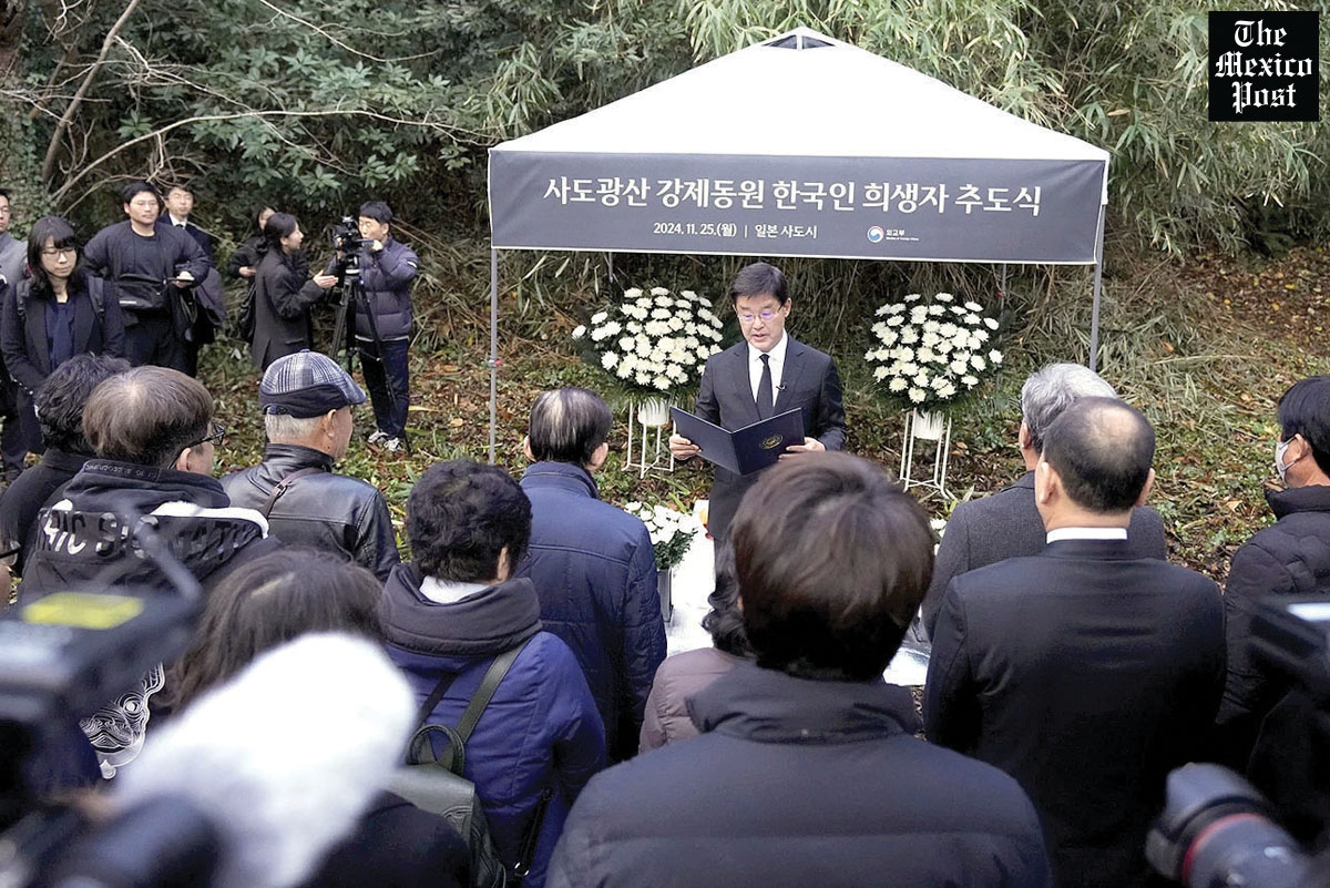 Corea del Sur rindió homenaje a los trabajadores coreanos forzados de la guerra en las minas de oro de la isla de Sado en Japón en una ceremonia conmemorativa, un día después de boicotear un evento similar organizado por Japón, mientras las tensiones por las atrocidades históricas siguen afectando las relaciones entre las dos partes. La ceremonia en un antiguo dormitorio cerca de las minas de Sado del siglo XVI, que este verano fueron declaradas Patrimonio de la Humanidad por la UNESCO, fue organizada por el Ministerio de Relaciones Exteriores de Corea del Sur y asistió a ella nueve familias de trabajadores coreanos de la guerra, el embajador del país en Japón y otros funcionarios.