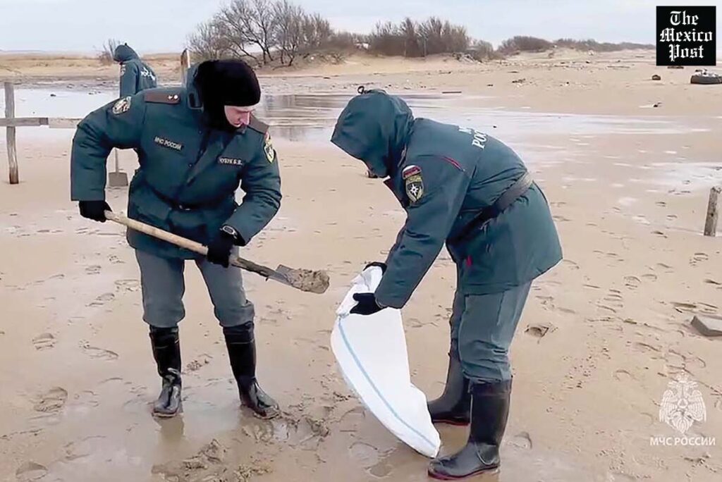 “Se están limpiando 49 kilómetros de costa en los distritos de Temriuk y Anapa”, dos conocidos centros turísticos en la región de Krasnodar, dijo el Ministerio de Situaciones de Emergencia ruso en un comunicado.