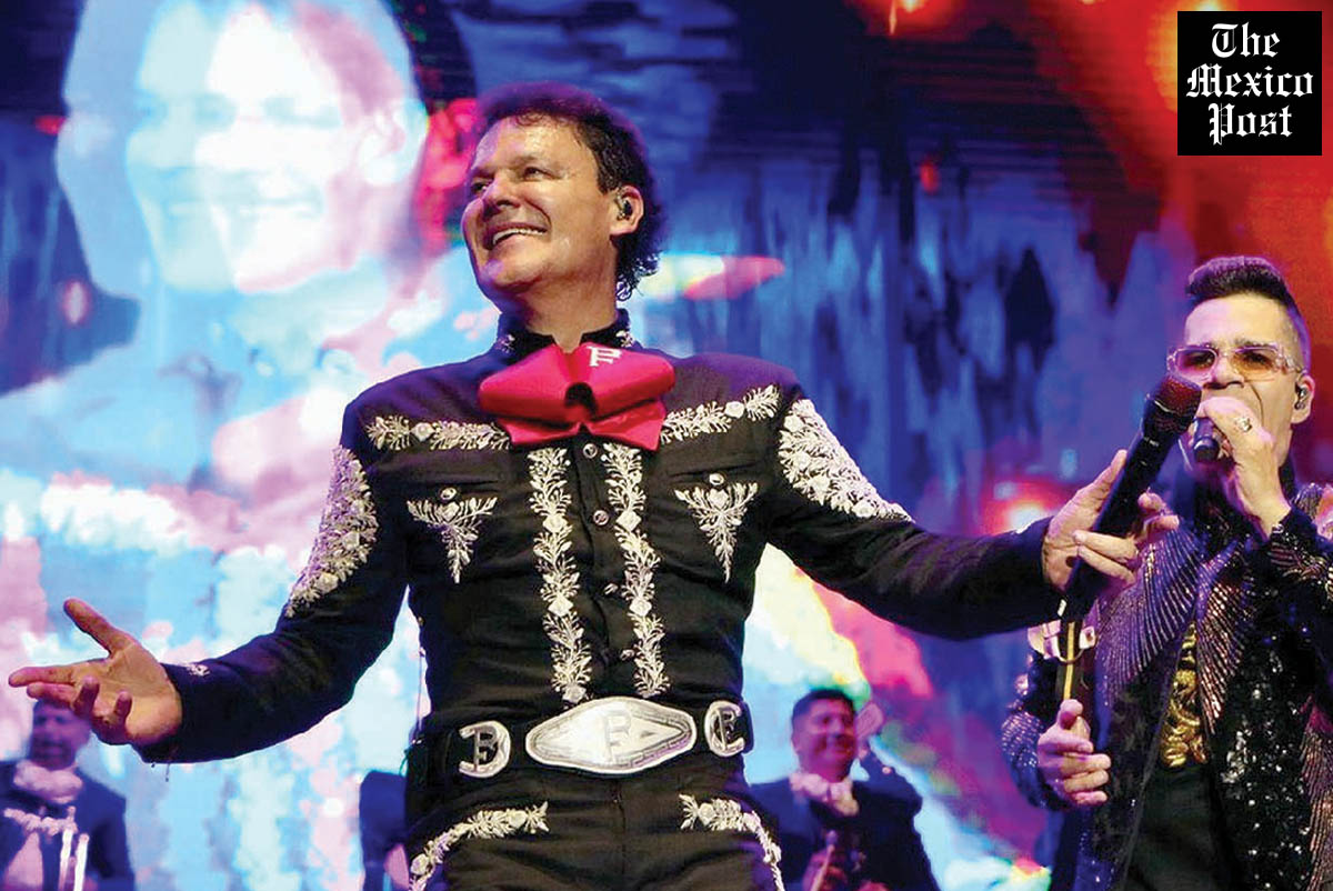 “Mi forma de sentir”, “Me encantas” y “Amarte a la antigua” se escucharon en las voces del público reunido, y cuando parecía cerrar con “Yo no fui” con un esquelético mariachi animado en pantalla, pero cediendo al grito del público de “una más”, y entonces, agregó “Canción mixteca”, “Viva México” y “Cielito lindo”, con banderas de la patria ondeando en la pantalla y el escenario.