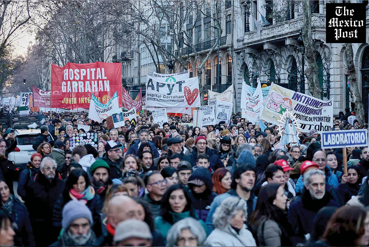 El detonante para la marcha fue la situación del hospital público Garrahan, principal centro pediátrico del país, cuyos trabajadores realizan paros y protestas desde hace meses denunciando una asfixia salarial.