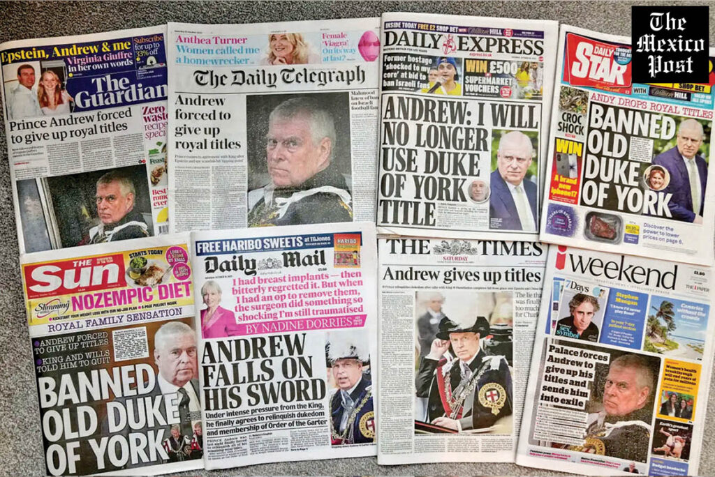 Una avalancha constante de titulares negativos sobre Andrés y Epstein en las últimas dos semanas llevó al príncipe a renunciar a sus títulos, incluido el de duque de York, mientras la monarquía intentaba distanciarse de décadas de titulares sensacionalistas sobre los negocios sospechosos, el comportamiento inapropiado y las controvertidas amistades de Andrés. Pero eso no ha bastado para silenciar a los críticos que han pedido medidas más severas, incluyendo una ley del Parlamento para despojarlo oficialmente de su ducado, arrebatárselo su título de príncipe o expulsarlo de su lujosa residencia.