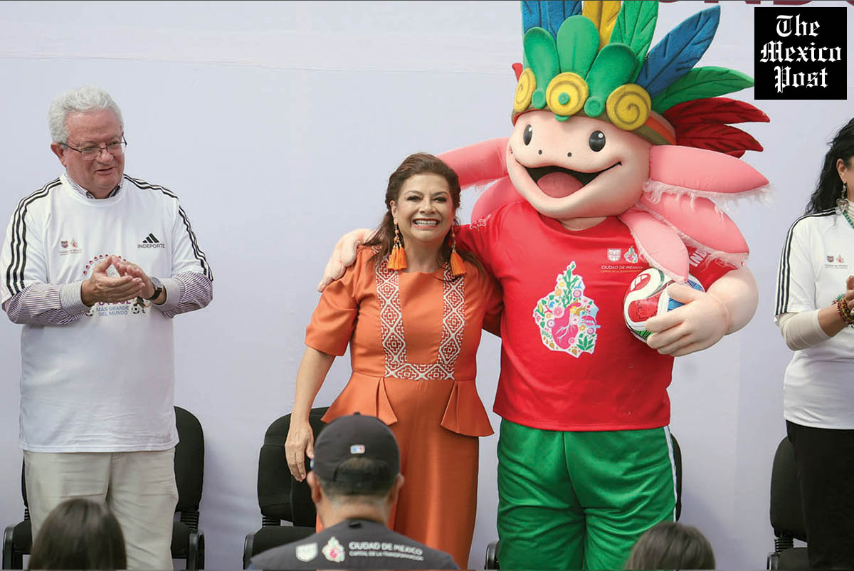 Ante campeones y campeonas mundiales de dominadas, Brugada Molina también presentó a la mascota oficial de la Ciudad de México para el Mundial de Fútbol, un ajolote, el cual porta un colorido penacho, con el dorsal número 10 y la leyenda “La ciudad más deportiva”, calcetas blancas y pantaloncillo y tenis verdes, acto que aprovechó para convocar a la ciudadanía a mandar propuestas de nombre.